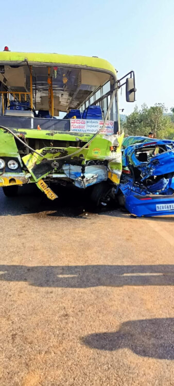 ಇವರು ಬಾಳೇಗುಳಿ ಕಡೆಯಿಂದ ಅಂಕೋಲಾ ಕಡೆಗೆ ಕಾರಿನಲ್ಲಿ ಬರುತ್ತಿದ್ದಾಗ, ಕಾರು ಚಾಲಕನ ನಿಯಂತ್ರಣ ತಪ್ಪಿ ರಸ್ತೆಯ ವಿಭಜಕ ದಾಟಿ ವಿರುದ್ಧ ದಿಕ್ಕಿಗೆ ಜೋರಾಗಿ ಬಂದಿದ್ದರಿಂದ, ಅಂಕೋಲಾ ಕಡೆಯಿಂದ ಯಲ್ಲಾಪುರ ಕಡೆಗೆ ಹೊರಟಿದ್ದ ಸಾರಿಗೆ ಸಂಸ್ಥೆಯ ಬಸ್ಸಿಗೆ ಜೋರಾಗಿ ಗುದ್ದಿ ಸುಮಾರು 10 ಮೀಟರ್ ದೂರ ಚಿಮ್ಮಿದ ಪರಿಣಾಮ ಕಾರು ಸಂಪೂರ್ಣ ಜಖಂ ಗೊಂಡು ನುಜ್ಜು ಗುಜ್ಜಾಗಿದೆ.