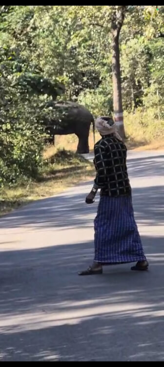 ಆನೆ ಮಾತ್ರ ಜನ ಅಥವಾ ವಾಹನಗಳ ಬಗ್ಗೆ ಕಿಂಚಿತ್ತೂ ಭಯವಿಲ್ಲದೆ, ರಸ್ತೆಯಲ್ಲೇ ನಿಂತು ನೆರೆದಿದ್ದ ಜನರನ್ನು ನೋಡುತ್ತಿತ್ತು. ಈ ಅನಿರೀಕ್ಷಿತ ಅತಿಥಿಯನ್ನು ನೋಡಲು ಜಮಾಯಿಸಿದ್ದ ಜನರು, ಸಮಯ ಕಳೆಯಲು ಮೊಬೈಲ್ನಲ್ಲಿ ವಿಡಿಯೋ ಮತ್ತು ಫೋಟೋಗಳನ್ನು ತೆಗೆದುಕೊಂಡರು. ವಿಡಿಯೋ ಮಾಡುವವರಿಗೆ ಪೋಸ್ ನೀಡುವಂತೆ ನಿಂತಿದ್ದ ಆನೆಯು, ಯಾರಿಗೂ ತೊಂದರೆ ಮಾಡದೆ, ಸುಮಾರು ಅರ್ಧ ಗಂಟೆಗೂ ಹೆಚ್ಚು ಸಮಯವನ್ನು ರಸ್ತೆಯಲ್ಲೆ ಕಳೆಯಿತು.