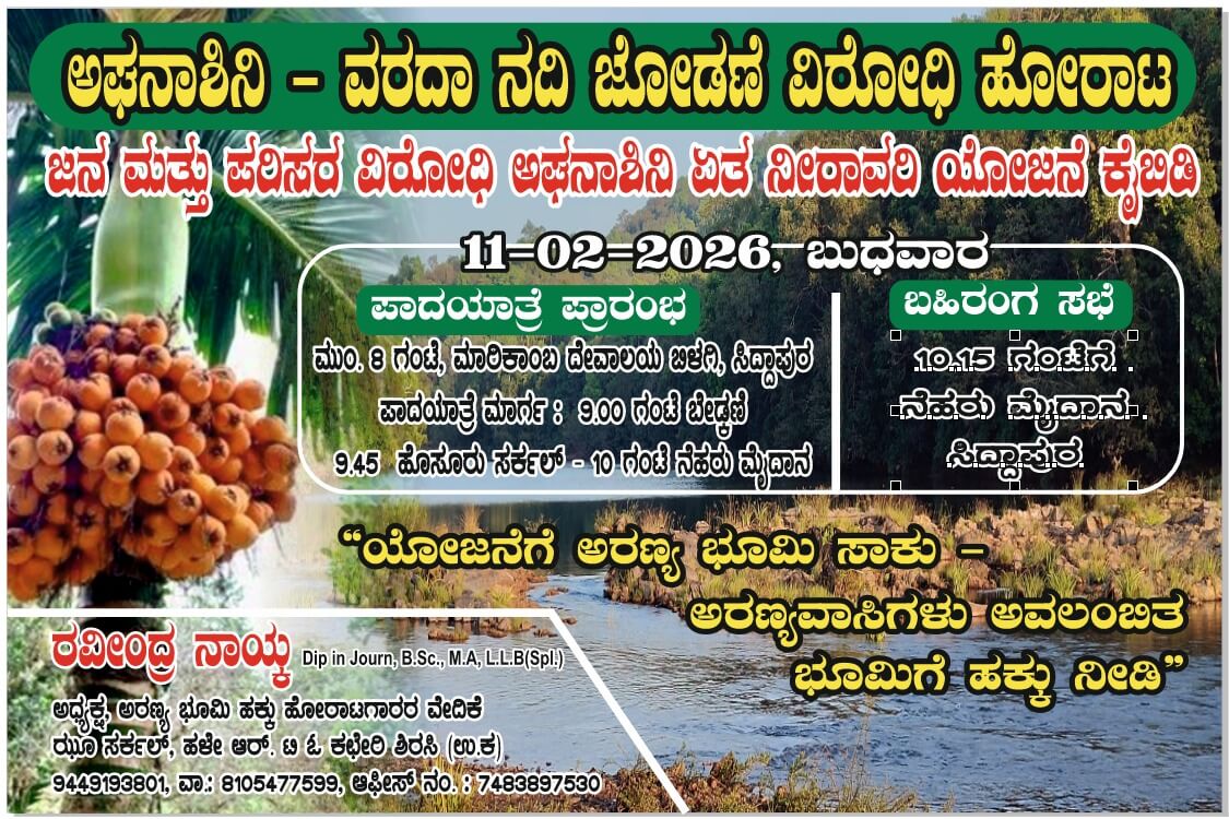 ಪವಿತ್ರವಾದ ನೀರಿನಿಂದ ಹುಟ್ಟಿ ಪವಿತ್ರವಾಗಿಯೆ ಸಮುದ್ರಕ್ಕೆ ಸೇರುವ ಏಕೈಕ ನದಿ ಅಘನಾಶಿನಿ ನದಿಯಾಗಿದೆ. ನಮ್ಮ ಜಿಲ್ಲೆಯಲ್ಲಿ ೬೪೩೫೪ ಹೆಕ್ಟೇರ್ ಅರಣ್ಯ ಭೂಮಿ ಯೋಜನೆಗಳಿಗೆ ನೀಡಲಾಗಿದೆ.ಆದರೆ ಇಲ್ಲಿಯ ಅರಣ್ಯ ವಾಸಿಗಳಿಗೆ ನೀಡಲು ಸರ್ಕಾರದ ಬಳಿ ಭೂಮಿ ಇಲ್ಲ ಇಂತಹ ವಿಪರ್ಯಾಸದಿಂದ ಜನಸಾಮಾನ್ಯರ ಜೀವನ ಕಷ್ಟವಾಗಿದೆ.ಅಘನಾಶಿನಿ ಯೋಜನೆಯ ಪಿಸಿಬಿಲಿಟಿ ರಿಪೋರ್ಟ್ ಕಳೆದ ಅಕ್ಟೋಬರ್ ತಿಂಗಳಲ್ಲಿ ಬಂದಿದೆ. ಈ ನದಿ ಜೋಡಣೆ ಸುಪ್ರೀಂ ಕೋರ್ಟ್ ಆದೇಶದ ವಿರುದ್ಧವಾಗಿದೆ. ಇದು ಕೇವಲ ಮನುಷ್ಯರಿಗಲ್ಲ ಇಲ್ಲಿಯ ಸಸ್ಯ,ಪ್ರಾಣಿಸಂಕುಲಕ್ಕೆ ಹಾಗೂ ಸಣ್ಣ ಪುಟ್ಟ ಹಳ್ಳಕೊಳ್ಳಗಳಿಗೂ ಮಾರಕವಾಗಿದೆ ಹೀಗಾಗಿ ಇಂತಹ ಯೋಜನೆಯ ವಿರುದ್ದ ಹೋರಾಟಕ್ಕೆ ಇಳಿಯಲಾಗುತ್ತಿದೆ.